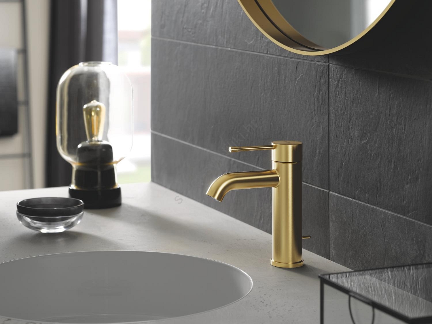 • Elegantna jednoručna miješalica za umivaonik GROHE Essence S-Size u izvedbi Brushed Cool Sunrise.