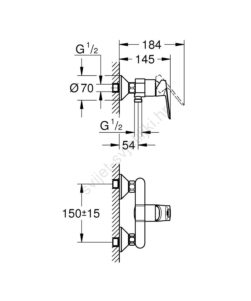 • Zidna pákasta miješalica za tuš – jednostavna montaža.