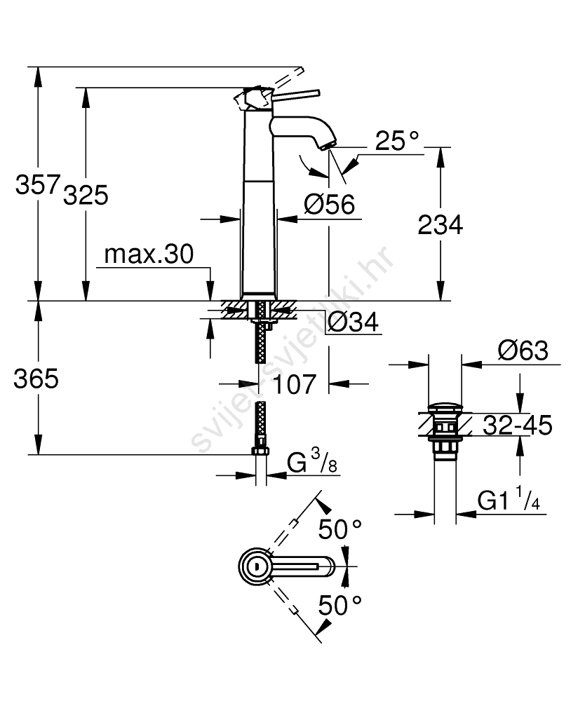 • Montaža s jednim otvorom idealna za samostojeće umivaonike.