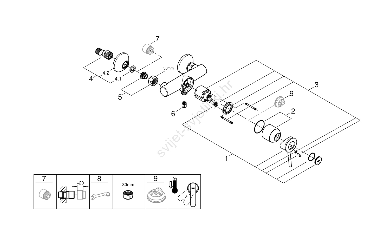• U paketu dolazi GROHE QuickSpanner za brzu i jednostavnu ugradnju bez potrebe za dodatnim alatima.