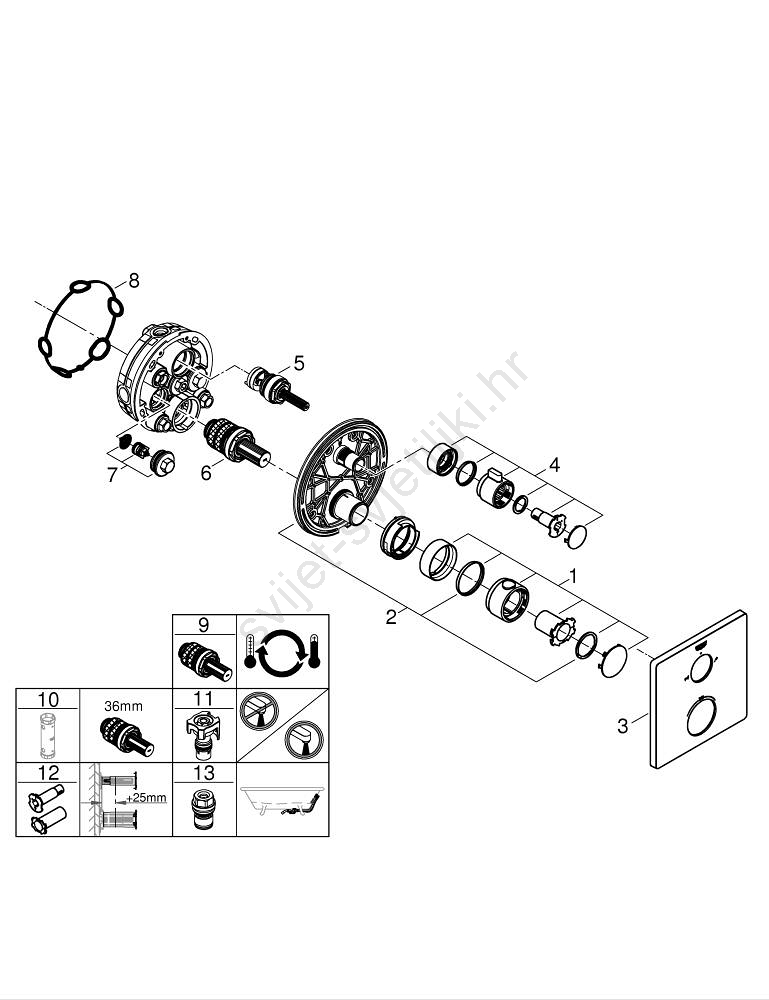 • Kompaktna kartuša GROHE TurboStat s voskom aktiviranim termoelementom za brzo i precizno podešavanje temperature.