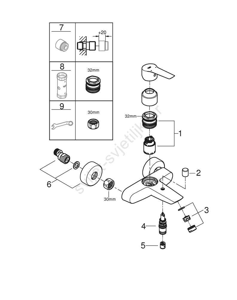 • U paketu se nalazi GROHE QuickSpanner (samo u kromiranoj varijanti) za jednostavnu montažu.