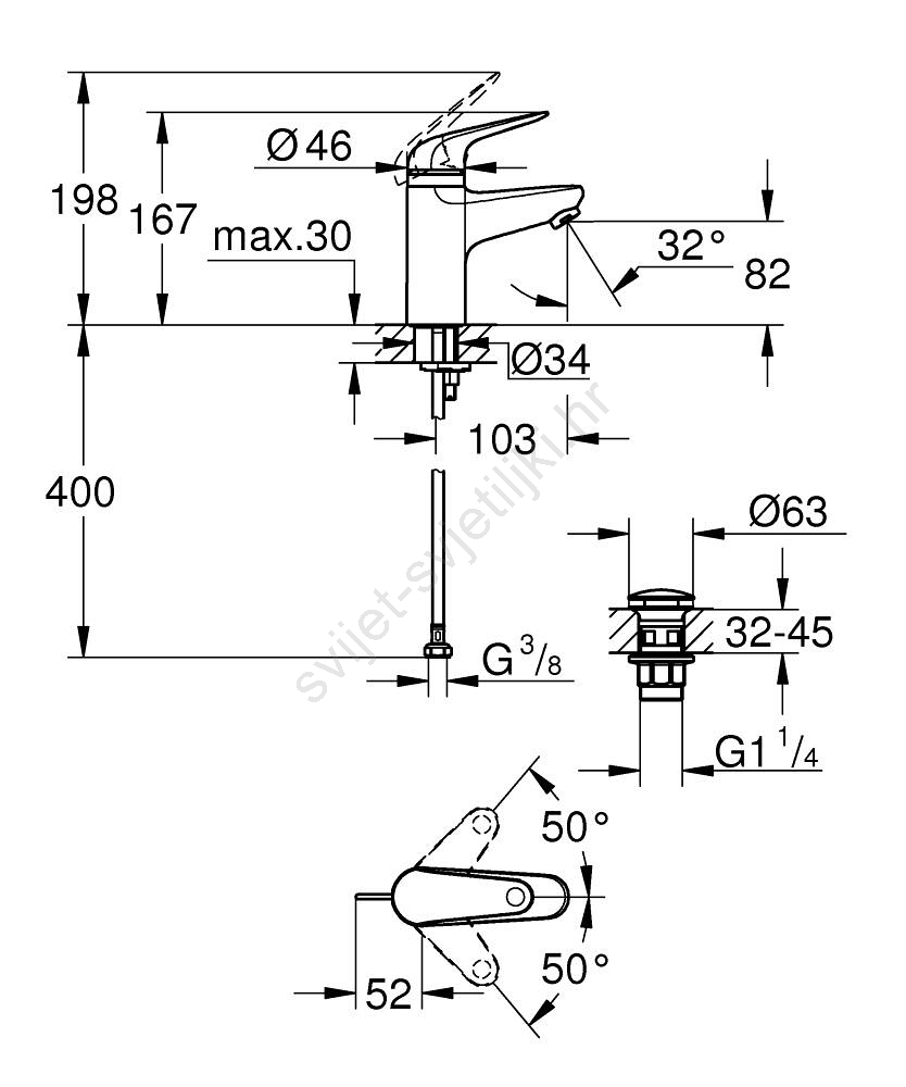 • Fleksibilne priključne cijevi i priključak G3/8 za jednostavnu instalaciju.