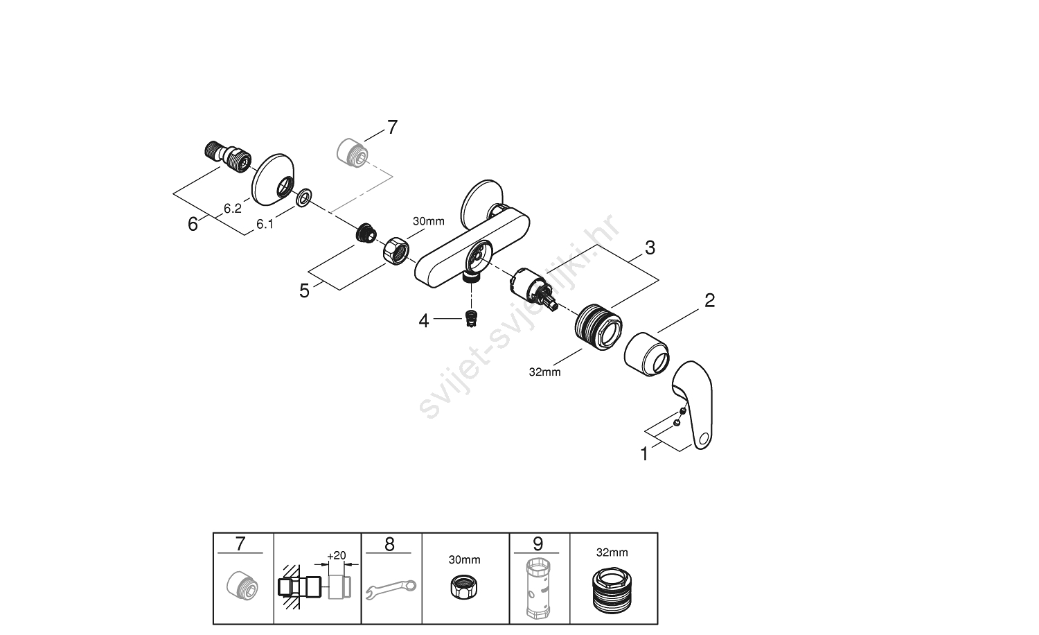 • U paketu se nalazi GROHE QuickSpanner za brzu i jednostavnu montažu bez potrebe dodatnog alata.