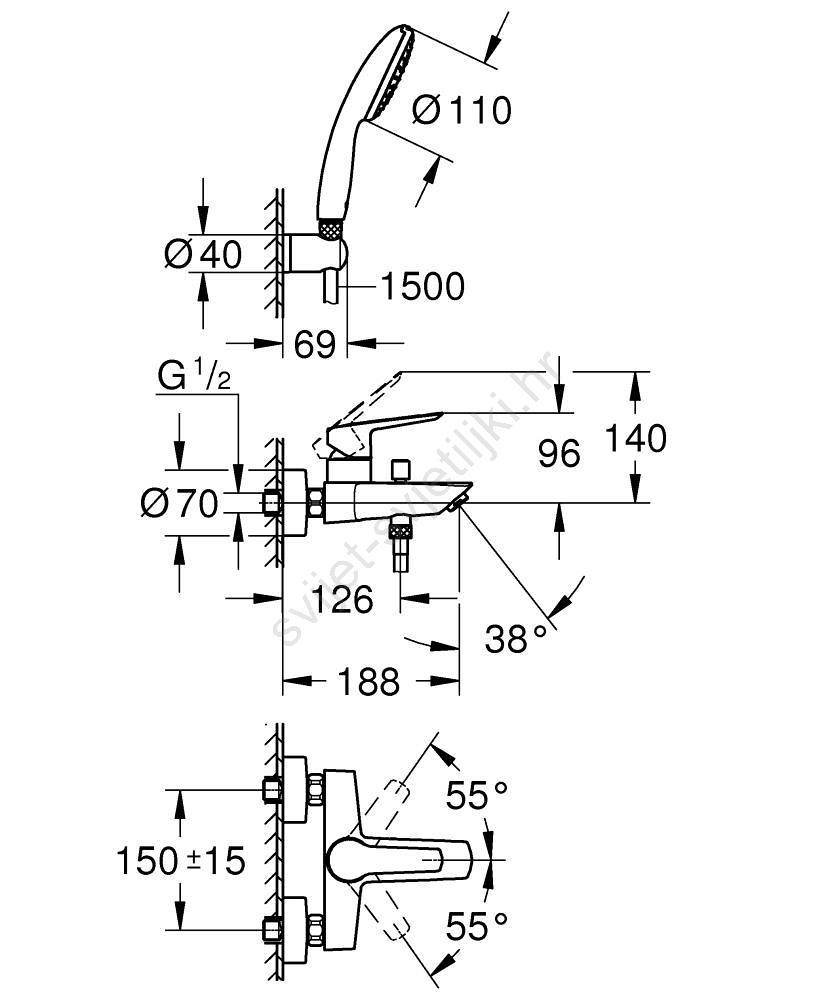 • Pogodno za montažu na zid s razmakom 150 mm, idealno za modernizaciju kupaonice.