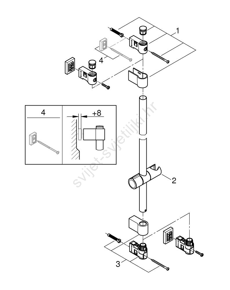 • Podesivi gornji držač GROHE FastFixation omogućuje montažu u postojeće otvore.