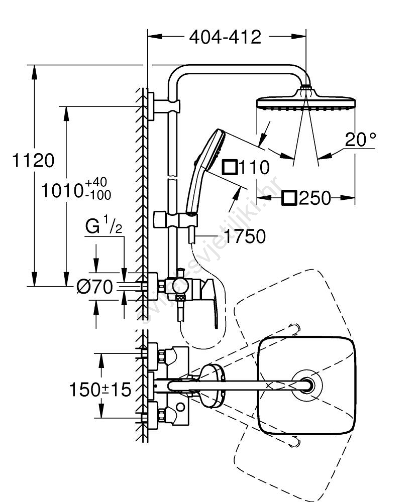 • Horizontalno okretno tuš-ramo dužine 390 mm za fleksibilno podešavanje.
