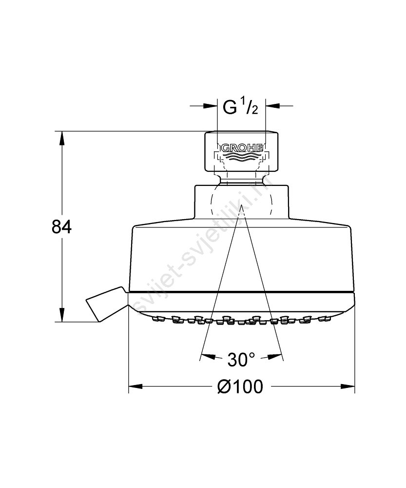 • Promjer glave 100 mm osigurava široko područje pokrivanja mlaza tuša.