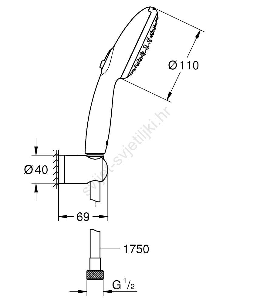 • Set sadrži ručnu tuš‑glavu, zidni držač i tuš crijevo za kompletno rješenje tuširanja.