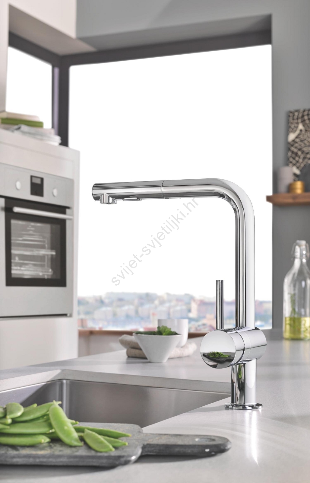 • Izvlačna dvostruka prskalica s prebacivanjem između laminarne struje i tušnog režima za maksimalnu fleksibilnost.