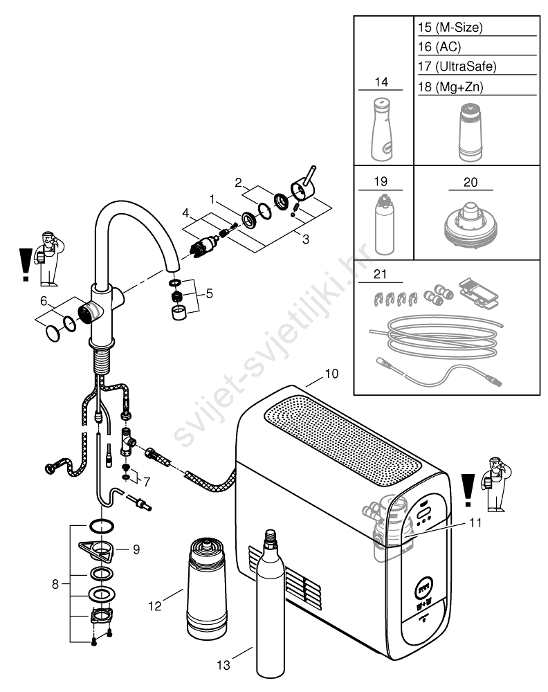 • Za područja s tvrdoćom vode ispod 9° dKH dostupan je filter s aktivnim ugljenom.