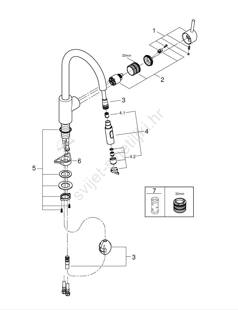 • Idealno za punjenje velikih lonaca i čišćenje velikih površina zahvaljujući visokom izljevu i izvlačnoj tuš-glavi.