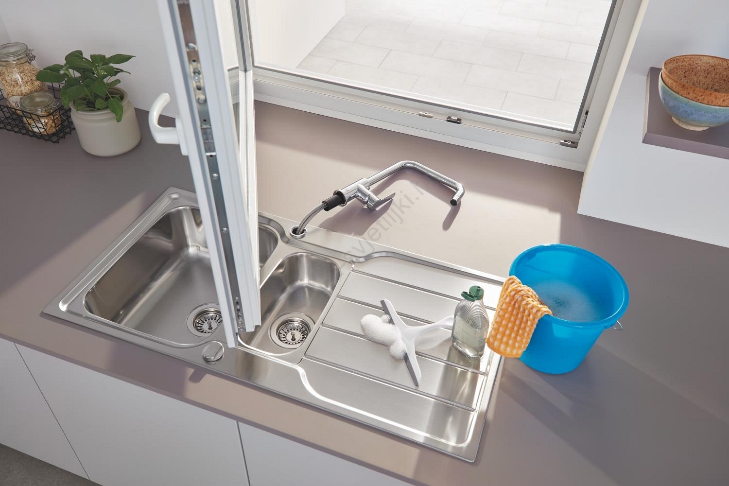 • Inox sudoper GROHE K500 s ocjeđivačem i 1,5-komornom izvedbom jednostavno je idealan izbor, prije svega zbog svoje fleksibilnosti i pouzdanosti.