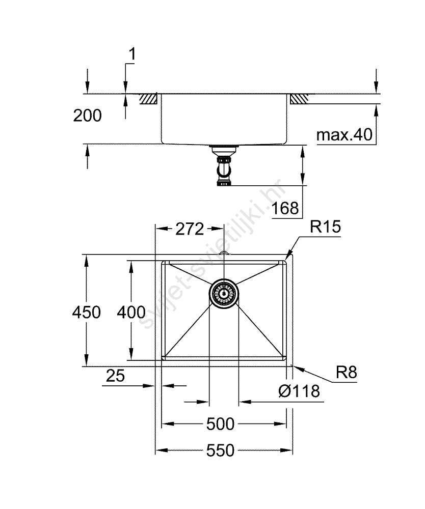 • Dimenzije sudopera 550 x 450 mm i duboka komora 500 x 400 x 200 mm za udoban rad.