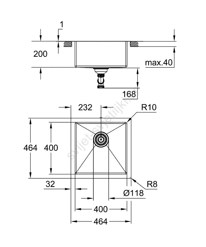 • Dimenzije sudopera: 464 x 464 mm, pogodan za kuhinjske ormariće širine od 450 mm.