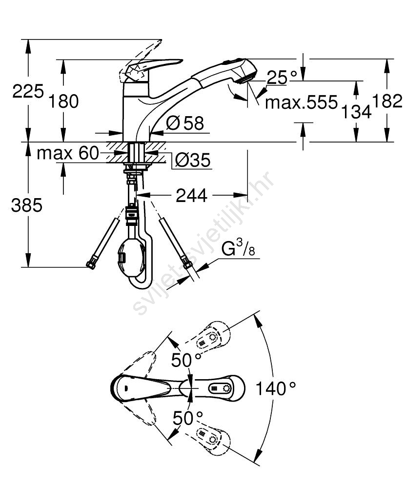 • Okretni lijevani izljev s kutom okretanja 140° za maksimalnu fleksibilnost pri radu u kuhinji.