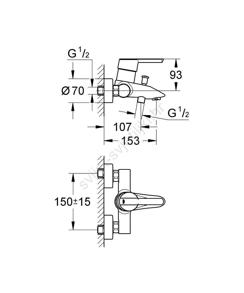 • Zidna miješalica za kadu s polugom za jednostavno upravljanje.