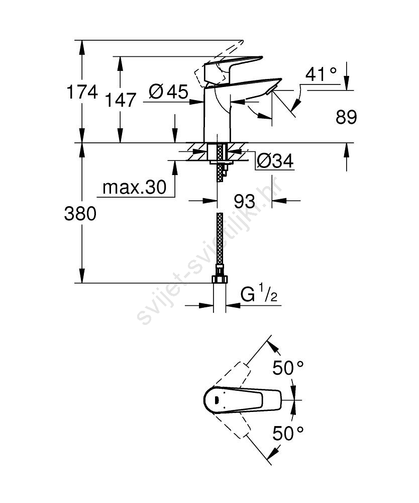 • Visina miješalice 147 mm i duljina izlijeva 93 mm za udobno korištenje.