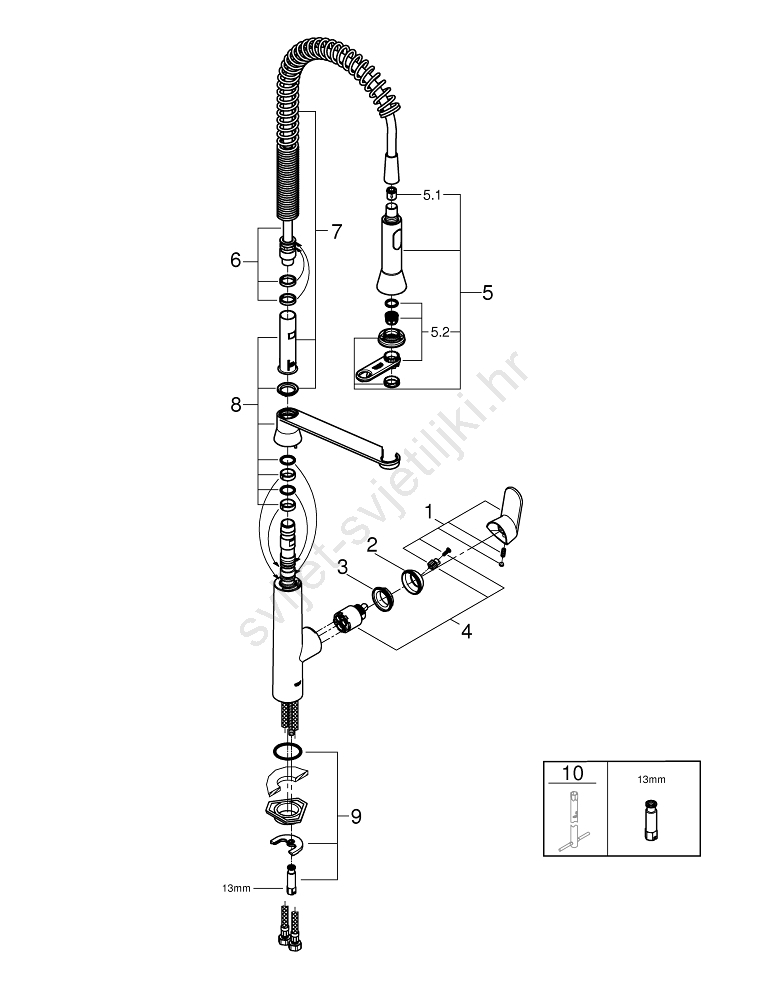 • Integrirani preklopnik između perlatora i tuš-mlaza s automatskim povratkom na perlator.