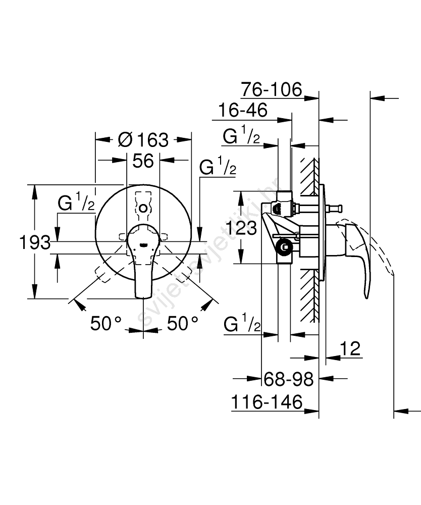 • U paketu je montažni set (19 450 002) s tijelom za ugradnju u zid.