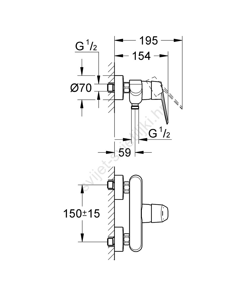 • Zidna jednoručna miješalica za tuš za jednostavnu ugradnju.