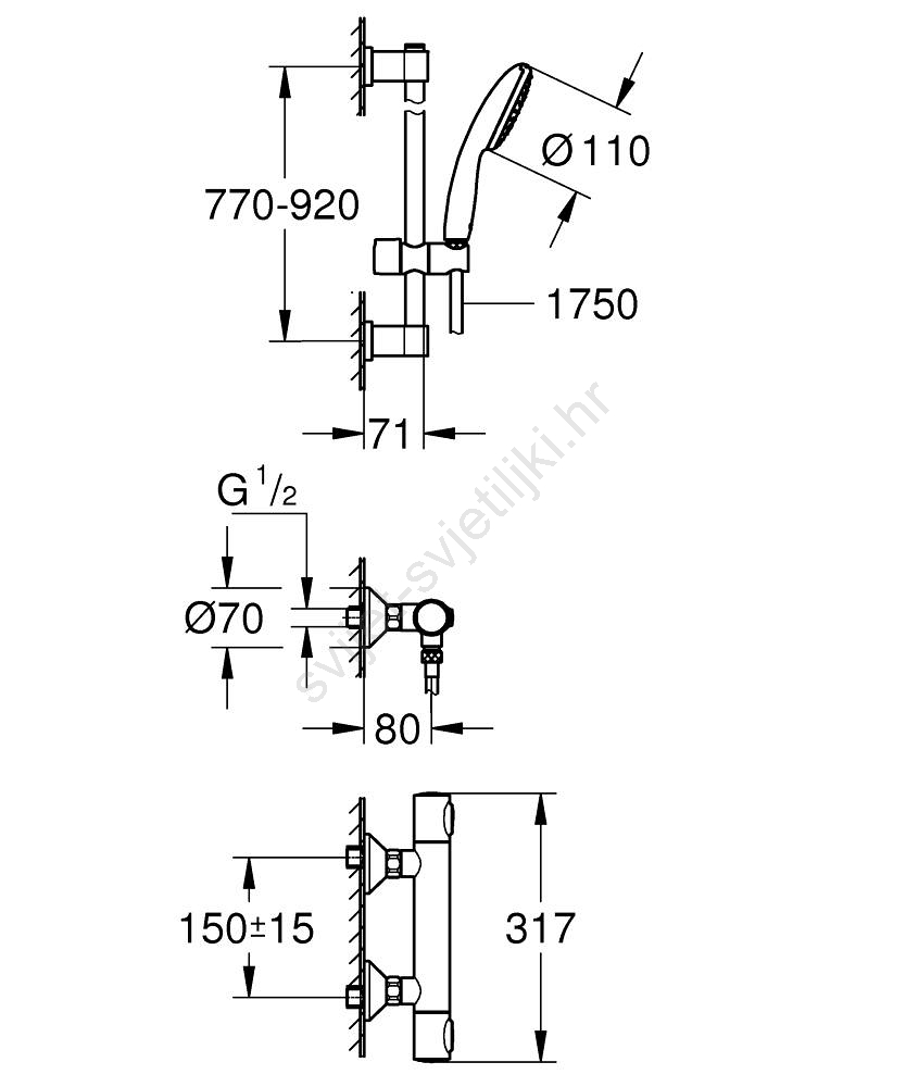 • Komplet za tuš Vitalio Start 110 s 900mm vodilicom i jednim načinom mlaza (Rain) za ugodno iskustvo tuširanja.