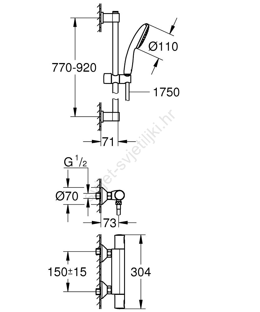 • Univerzalni instalacijski sustav kompatibilan sa svim standardnim tuš crijevima.