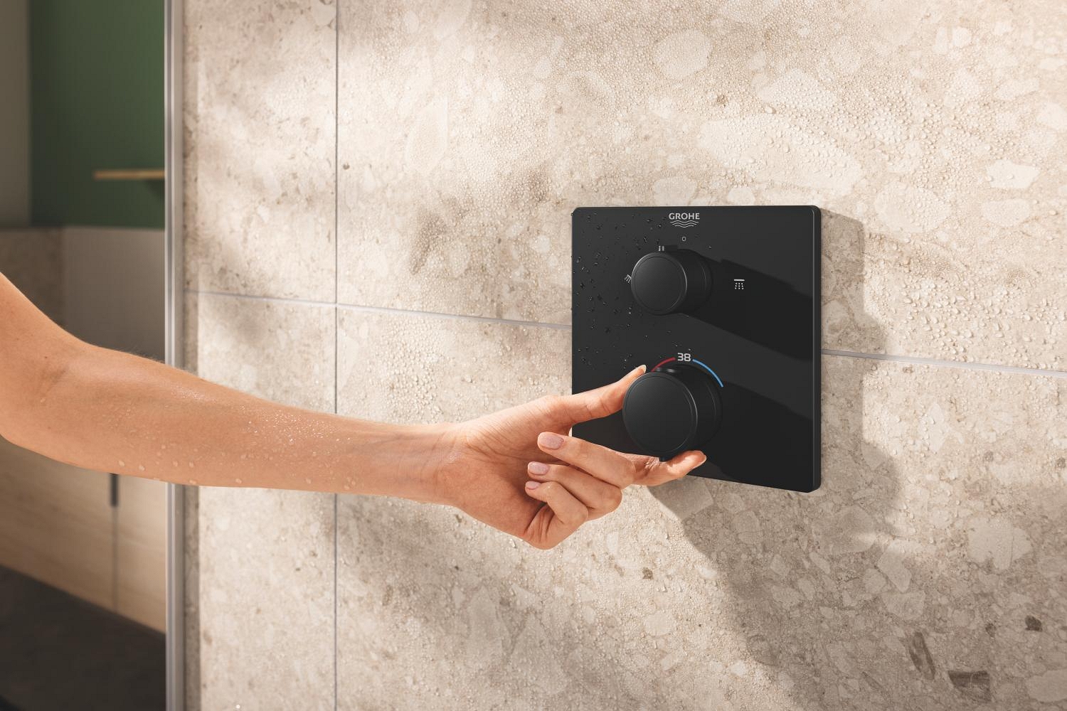 • Ugradbeni tuš sustav GROHE Precision u elegantnoj mat crnoj izvedbi.