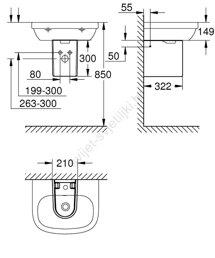 • Dimenzije: širina 210 mm, dubina 300 mm, visina 322 mm, pogodno za umivaonike različitih veličina.