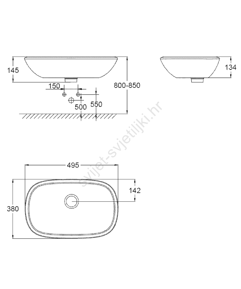 • Bez preljevnog otvora i bez rupe za slavinu, idealan za kombinaciju sa zidnim ili stolnim slavinama.