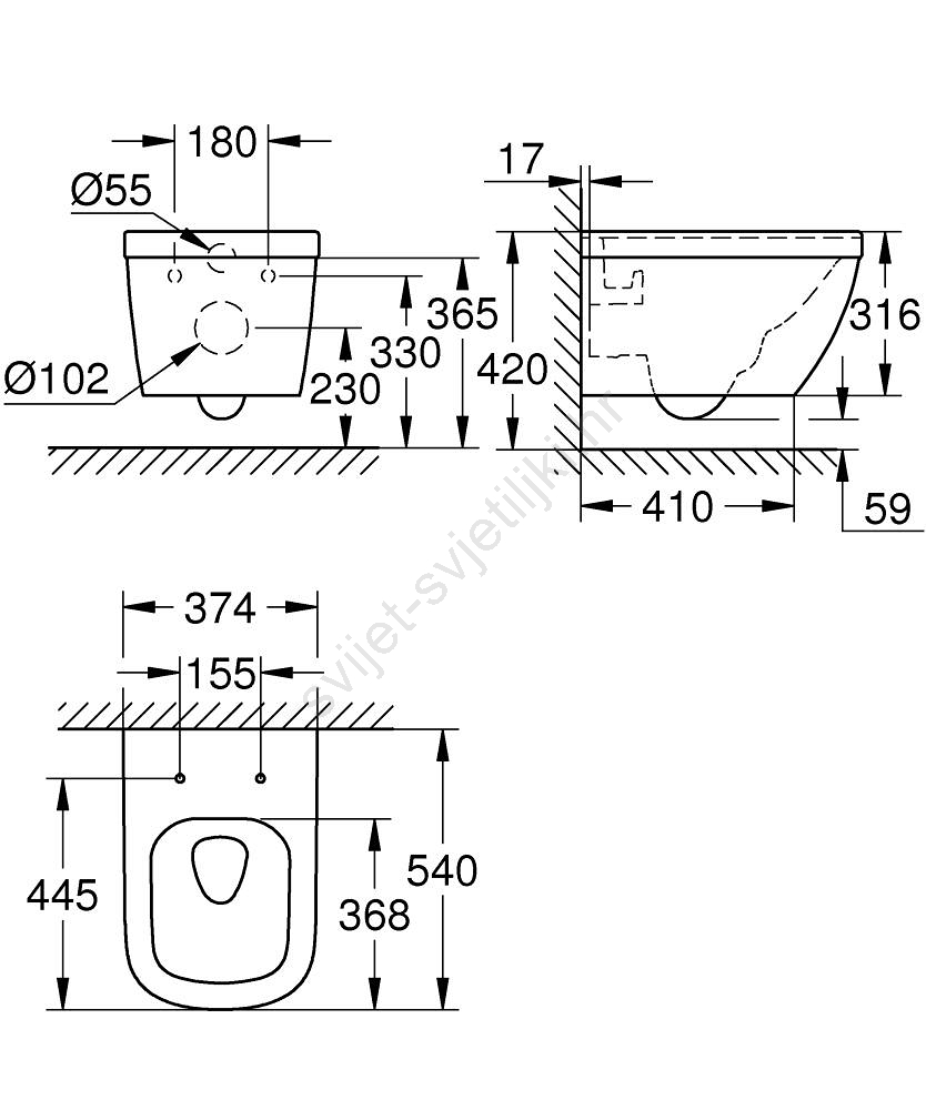 • Viseća instalacija omogućuje jednostavno čišćenje poda ispod WC-a.