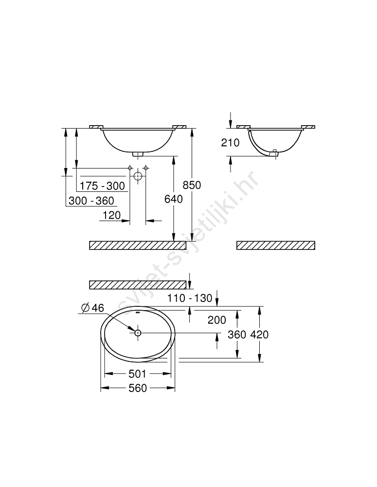 • Ugradni umivaonik širine 560 mm i dubine 420 mm za elegantno uklapanje u kupaonski namještaj.