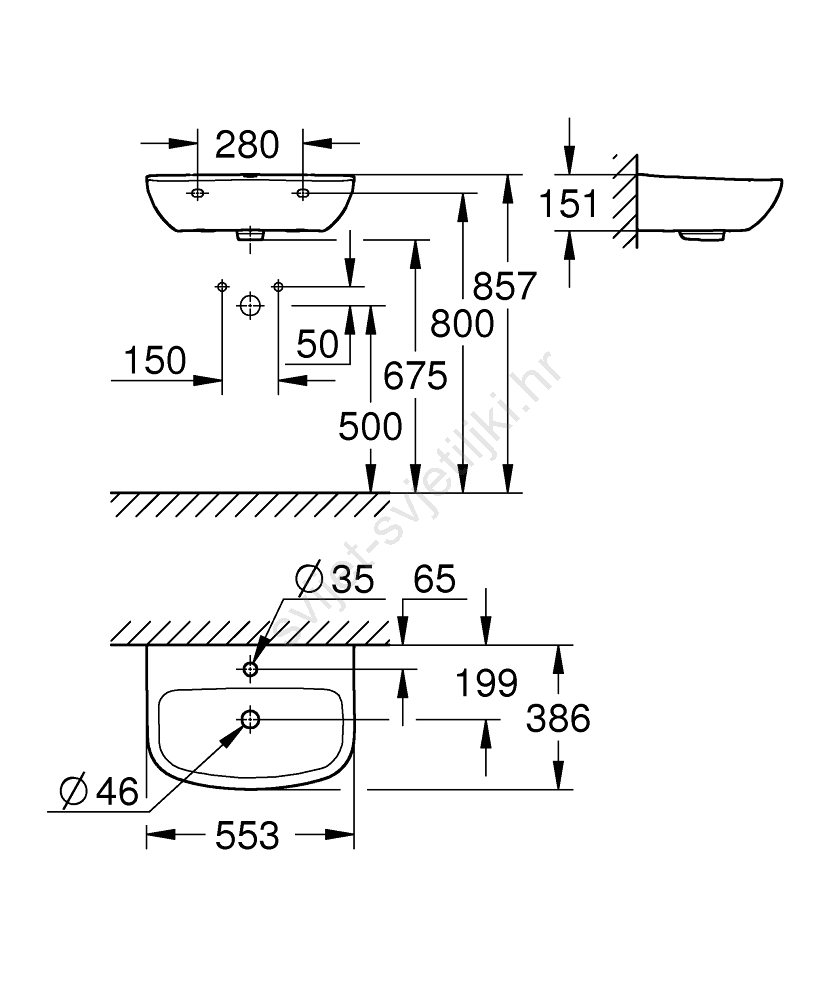 • Dimenzije 553 x 386 mm, idealno za manje kupaonice.