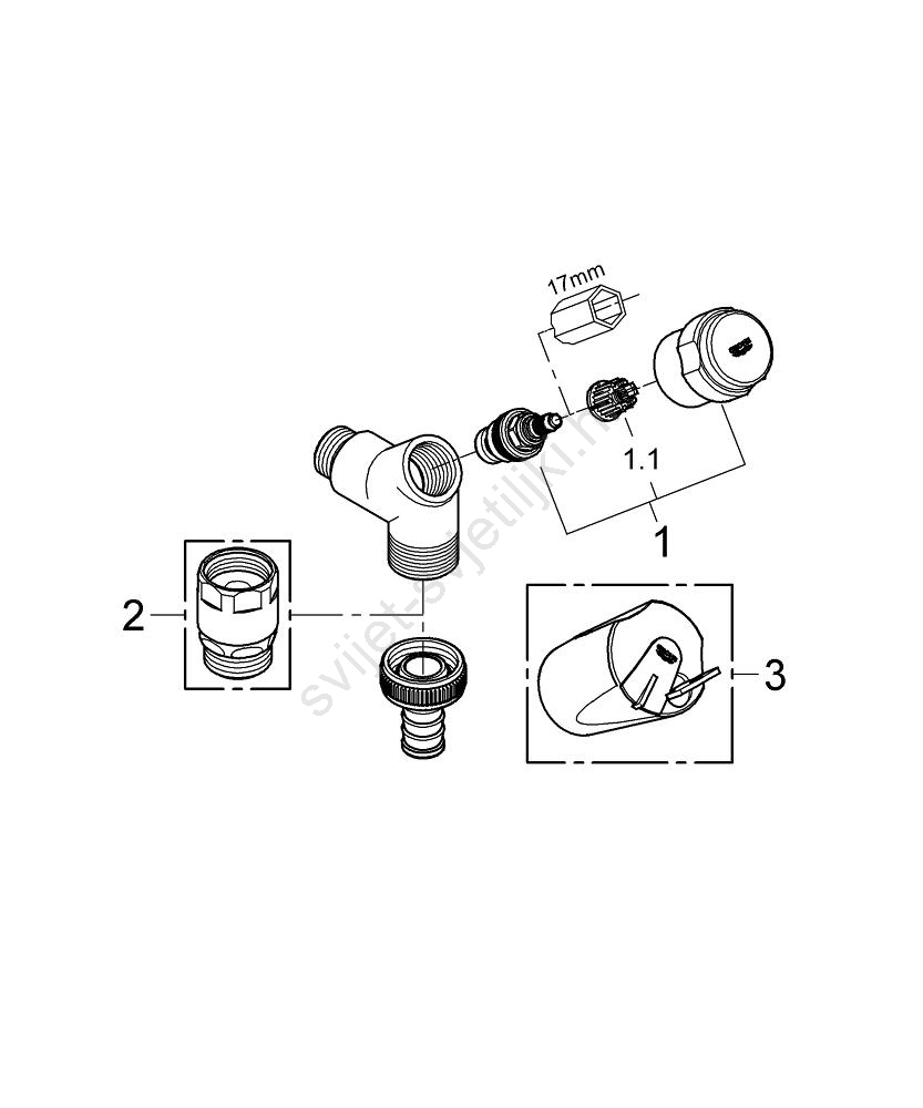 • Gornji dio s komorom za podmazivanje 1/2" za zatvarajući priključak za crijevo.