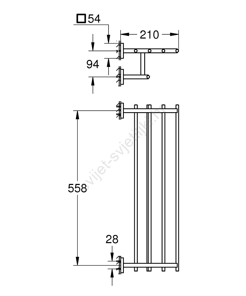 • Duljina 600 mm s razmakom bušenja 558 mm za jednostavnu ugradnju.