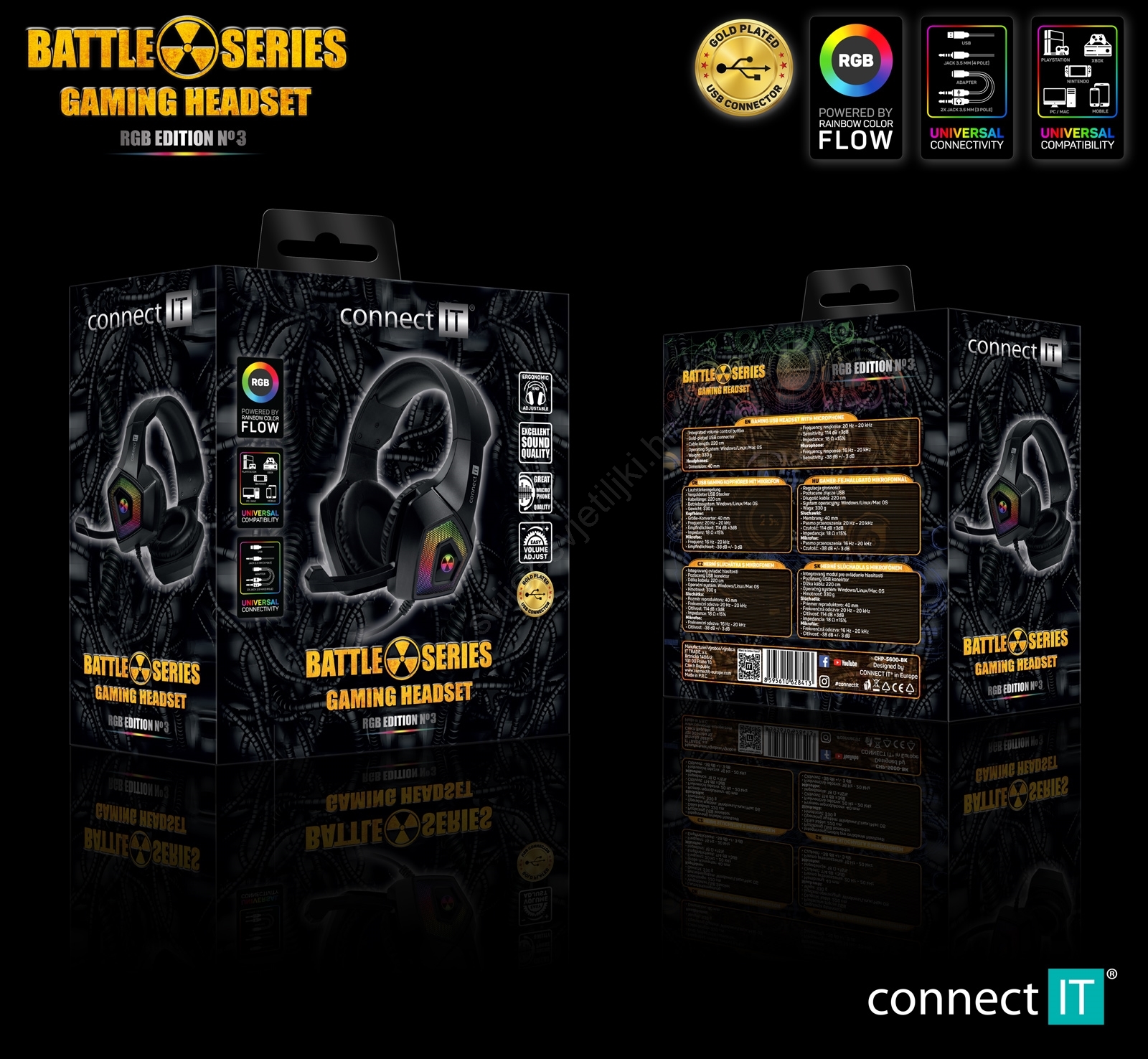 CONNECT IT CHP-5600-BK - LED RGB žičane gaming slušalice s mikrofonom crne boje