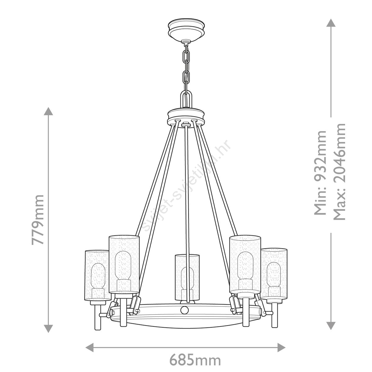 Hinkley - Luster na lancu COLLIER 5xE27/40W/230V Ø 68,5 cm crna karakterizira lijep i funkcionalan dizajn. Za svjetiljku je prikladna žarulja s bazom E27. Ovdje možete kupiti i druge žarulje po povoljnim cijenama. Bit će zanimljiv dodatak Vašem domu.
