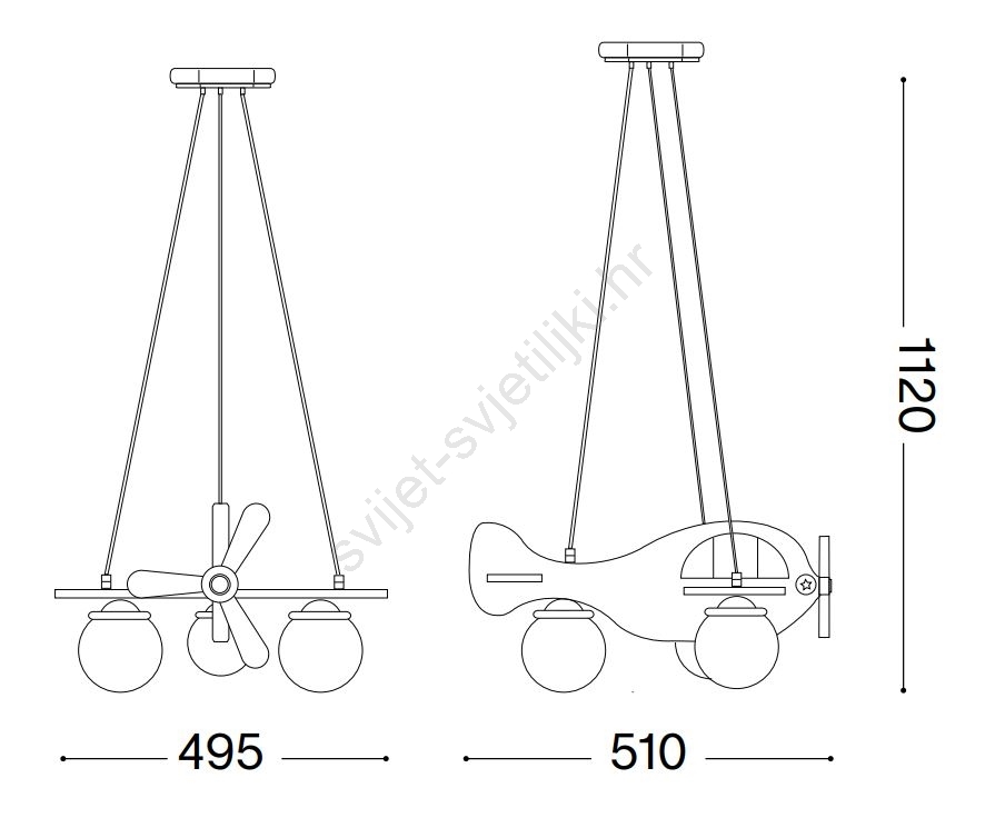 Ideal Lux - Dječji luster na sajli AVION 3xE14/28W/230V, plave boje karakterizira lijep i funkcionalan dizajn. Za svjetiljku je prikladna žarulja s bazom E14. Ovdje možete kupiti i druge žarulje po povoljnim cijenama. Bit će zanimljiv dodatak Vašem domu.