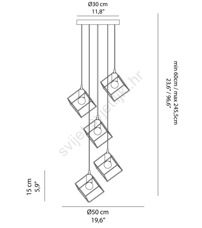 • Ideal Lux - Luster na sajli ICE 5xE27/60W/230V pr. 50 cm crna