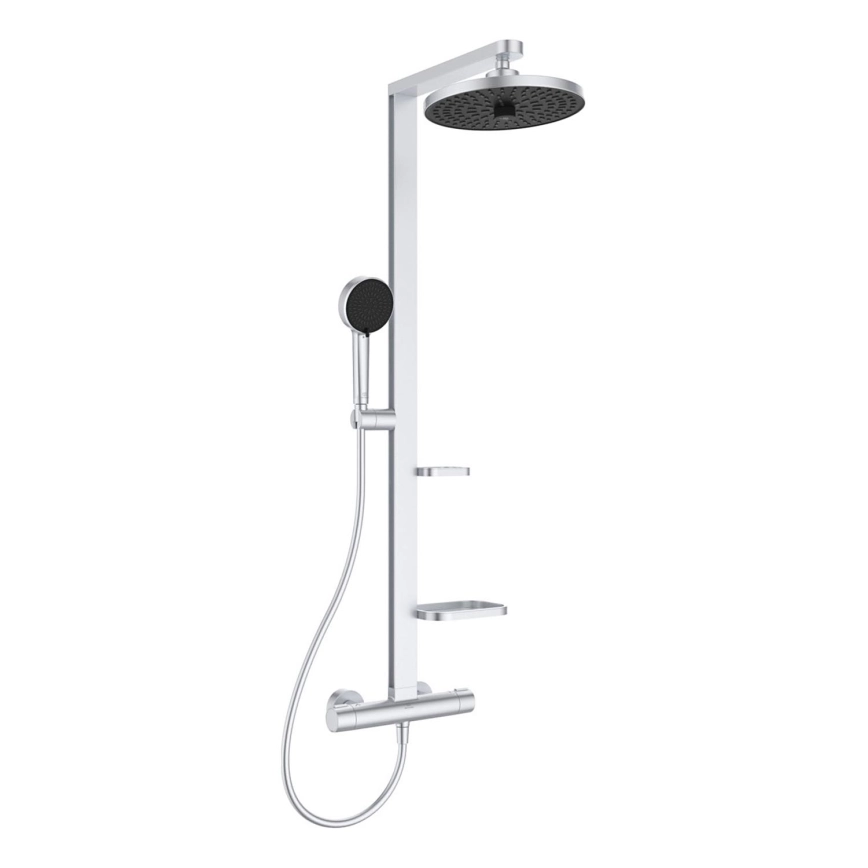 • U setu se nalazi tuš šipka dužine 1113 mm s pomičnim držačem, dvjema policama podesivima po visini i crijevom IdealFlex dužine 1750 mm.