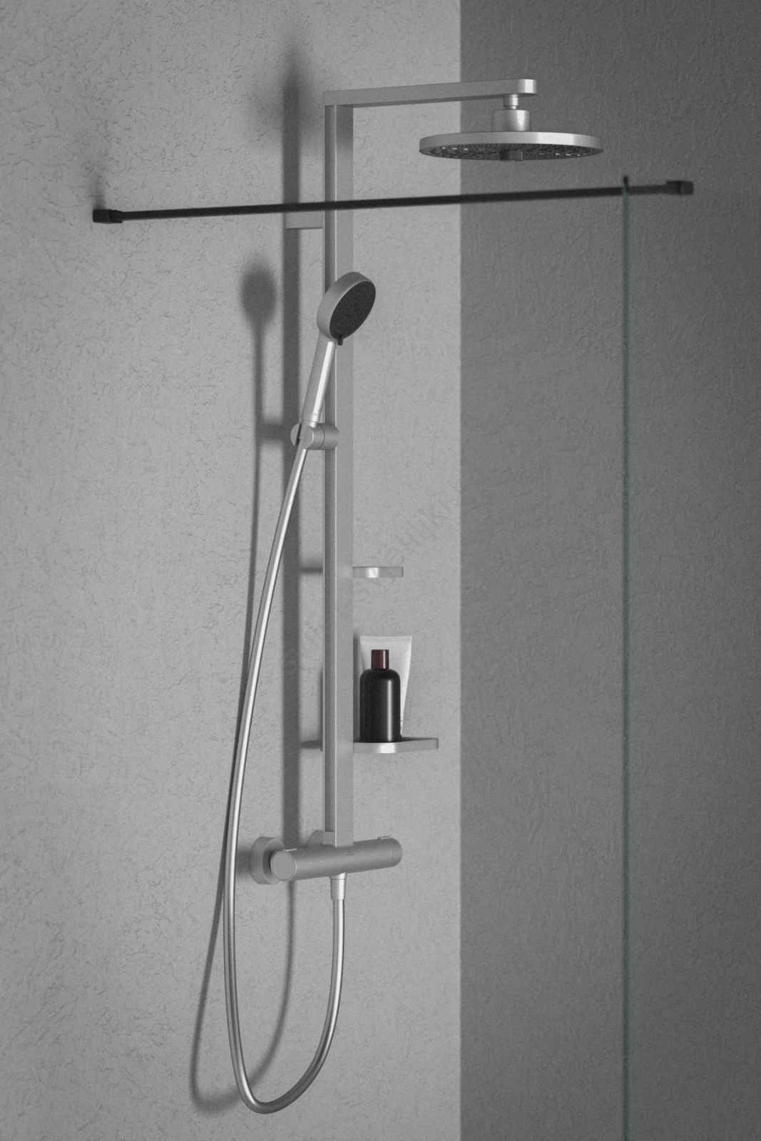 • Tušni set Ceratherm ALU+ čini cjelovito rješenje sa srebrnom termostatskom baterijom, glavnom i ručnom tuš glavom te tuš šipkom.