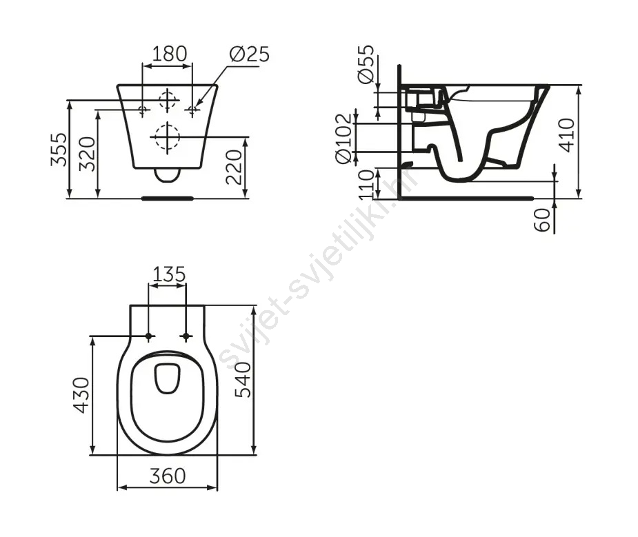 • WC se isporučuje s montažnim setom.