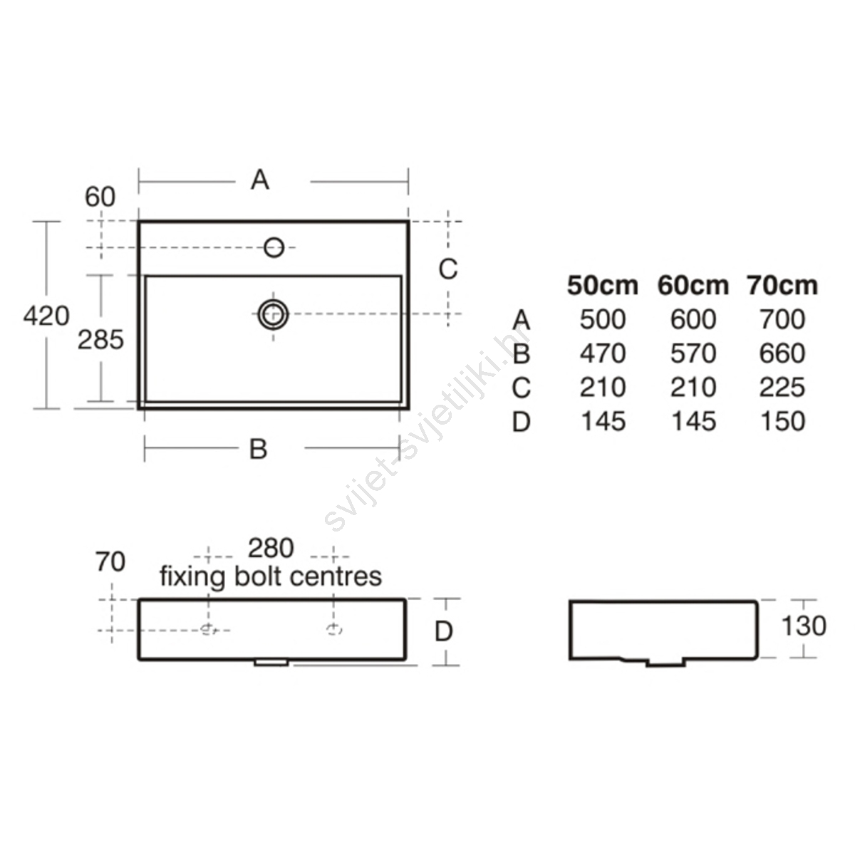 • Umivaonik ima jedan unaprijed pripremljeni otvor za ugradnju slavine za umivaonik.