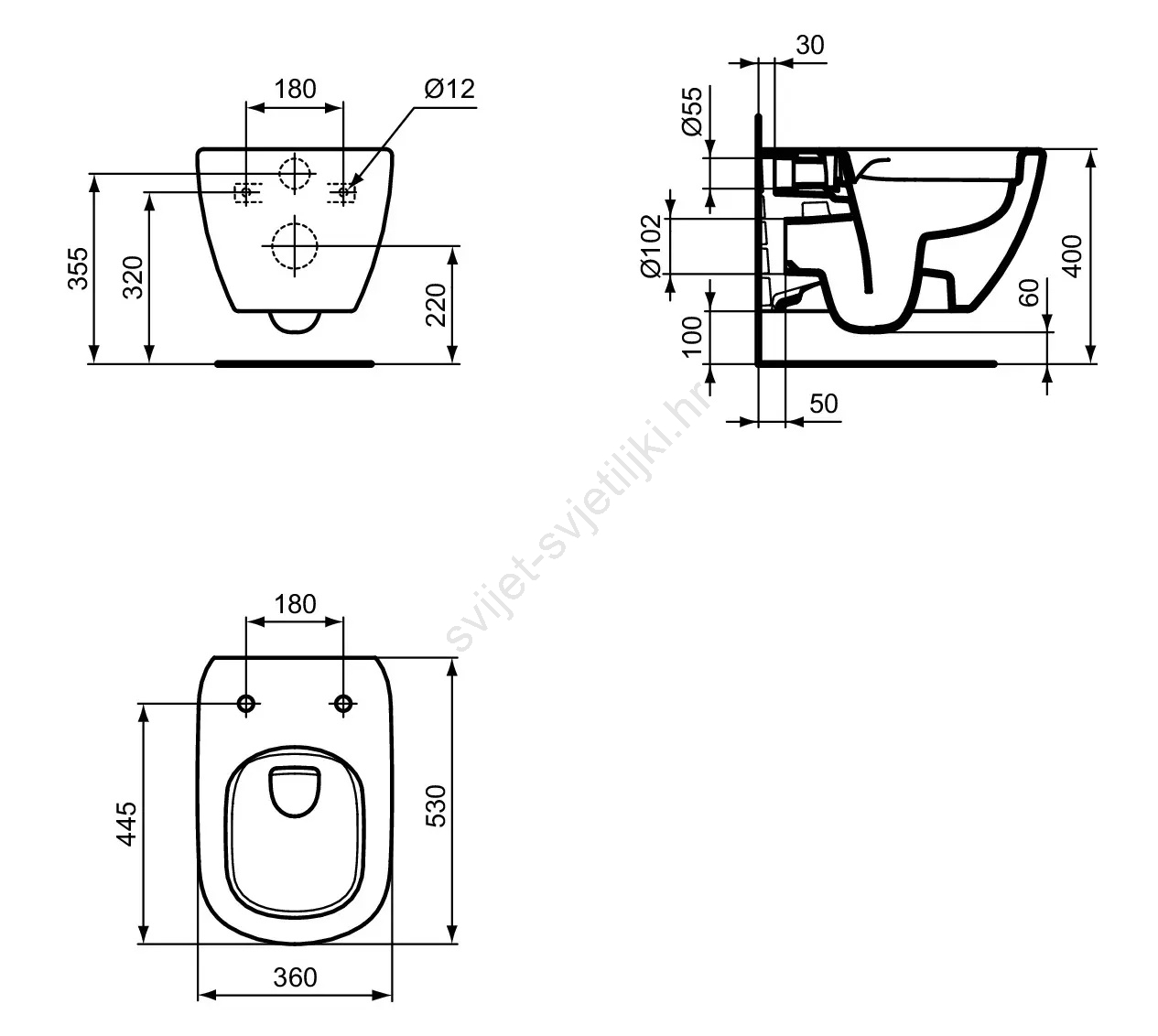 • Viseća WC školjka je izrađena od kvalitetne sanitarne keramike u bijeloj boji.