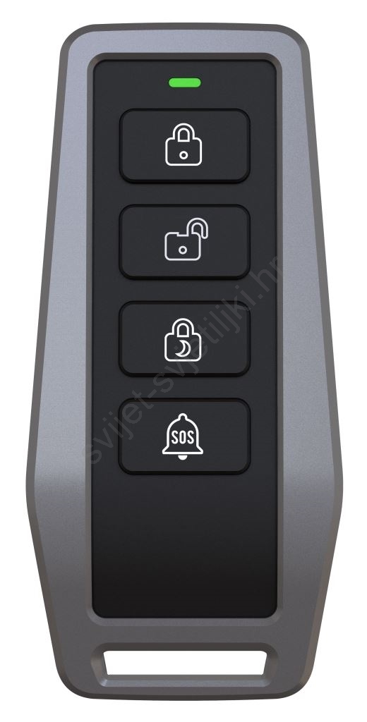 • 1x EP5 – daljinski upravljač (privezak) za brzo upravljanje alarmom, s podesivom Smart tipkom.