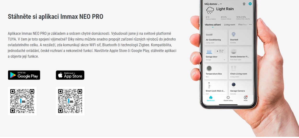 • Aplikacija Immax NEO PRO, kompatibilna s iOS i Android sustavima.