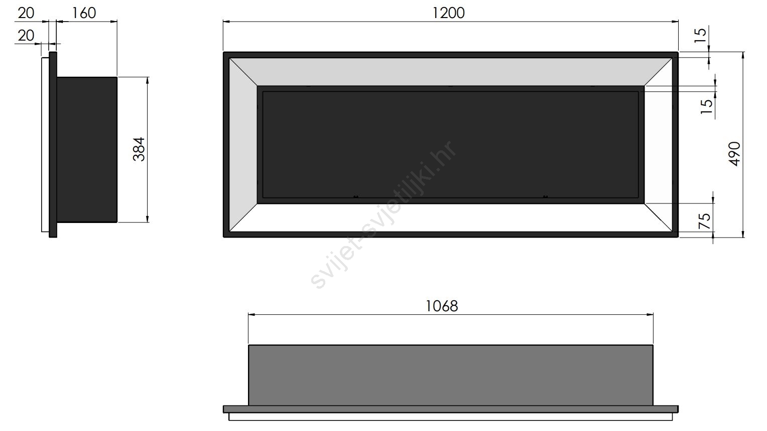 • Dimenzije kamina: 49 x 120 x 20 cm.