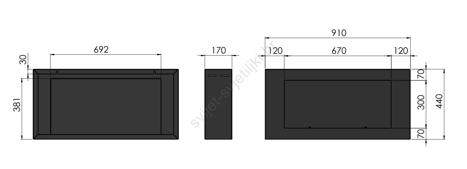 • Dimenzije kamina: 44 x 91 x 17 cm.
