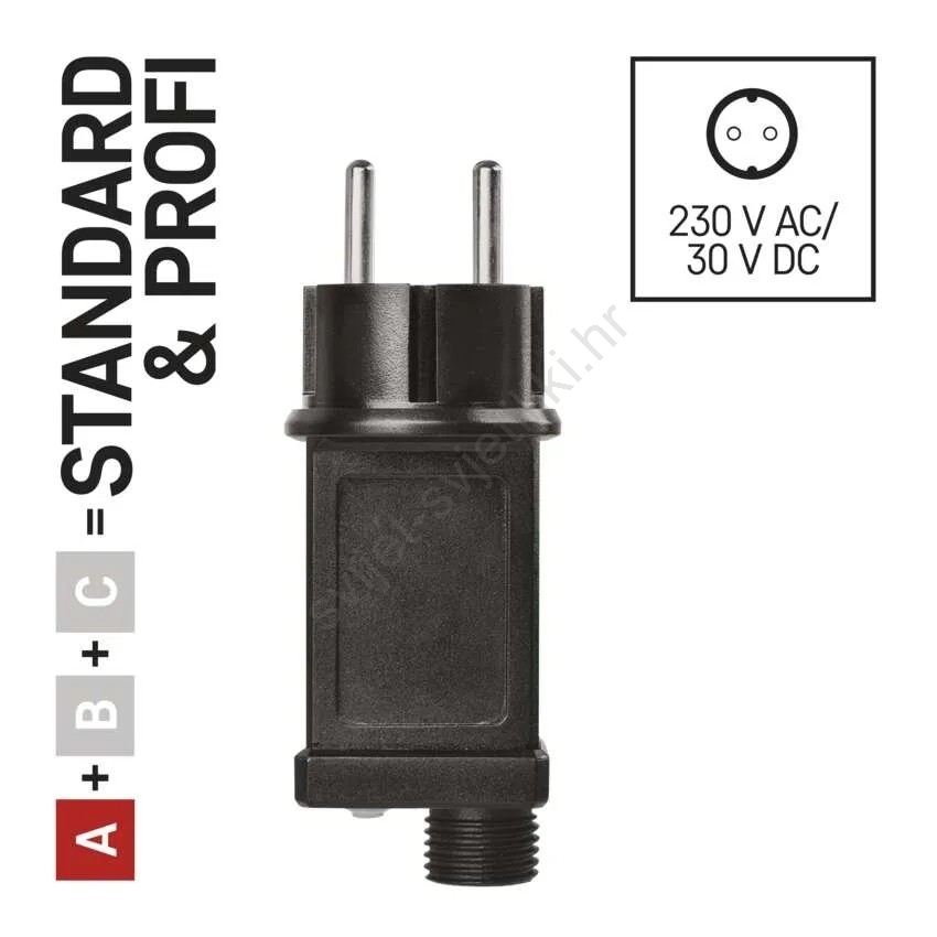 • Napajajući adapter koji omogućuje sigurno i jednostavno priključenje svjetala na električnu mrežu.