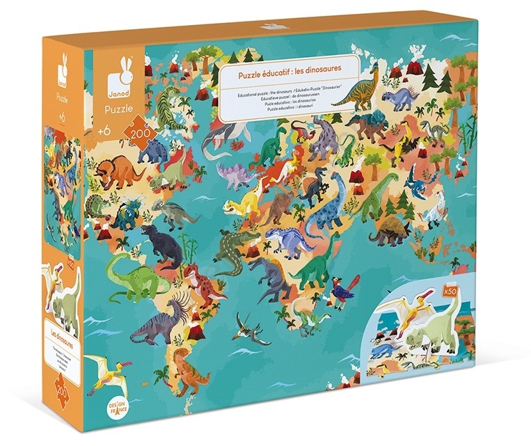 Janod - Dječje edukativne puzzle 200 kom dinosauri